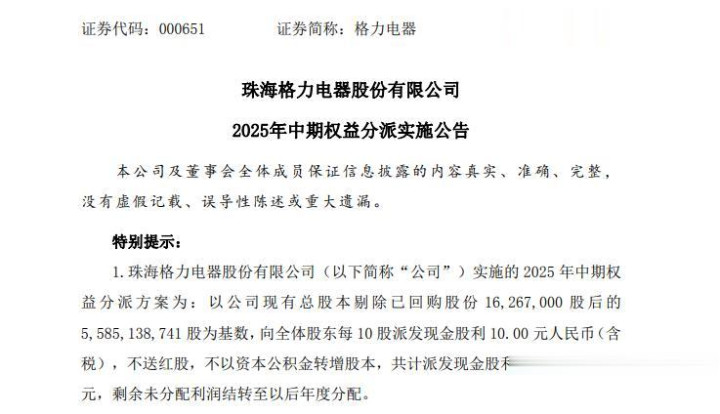 根据公告中期分红,每10股派10元现金,总额是55.85亿元,差不多把2025年上半年近四成的净利润,直接掏出来给股东。